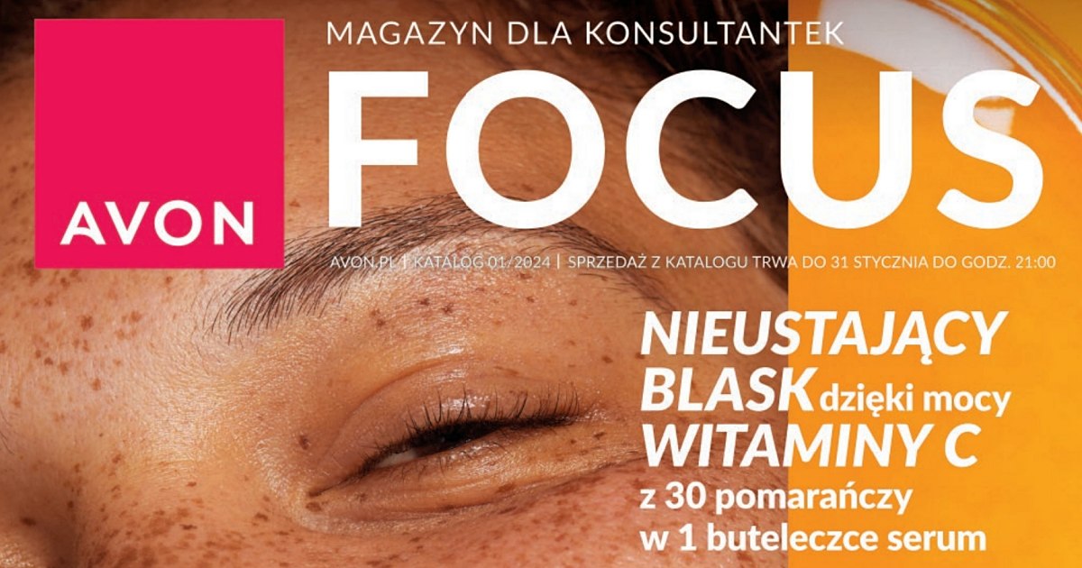 Magazyn Avon Focus 1/2024 styczeń obowiązywać będzie w kampanii katalogu 1/2024, a więc przez cały styczeń 2024 roku. Jak już mogłaś przeczytać w poprzednim wpisie dotyczącym styczniowego wydania magazynu Focus, jedną z największych nowości katalogu 1/2024 będzie rozświetlający krem pod oczy z kompleksem C. Produkt ten powiększa linię kosmetyków Complex C, która gości w ofercie Avon już jakiś czas. Z prezentowanych informacji dowiesz się jaki uzyskasz rabat przy zakupie ilościowym kosmetyków z Complex C. Możesz też zamówić próbki tych produktów. Ze szczegółami oferty zapoznasz się na stronach 2-6.