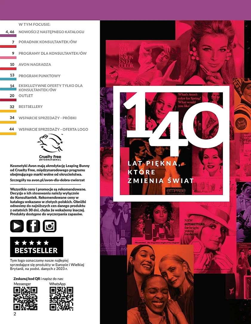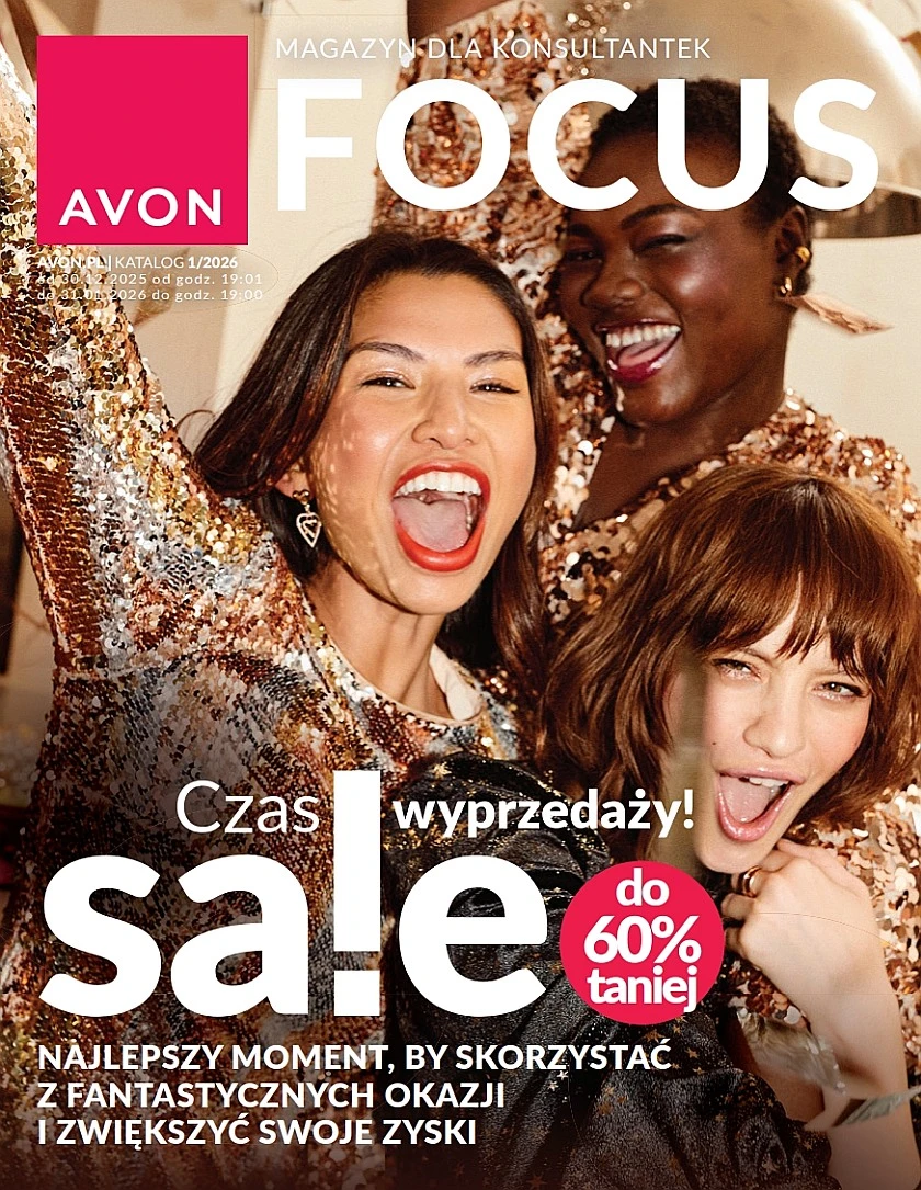 Magazyn Avon Focus 1/2026 obowiązywać będzie przez cały styczeń 2026 roku w trakcie trwania kampanii katalogu 1/2026. W grudniowym focusie wśród demo nowości znajdziesz nowe zapachy Attraction Deep Instinct dla Niej i dla Niego. Miłośniczki kolorowych i błyszczących ust z pewnością zainteresuje nowy błyszczyk z serum Make Up +Care.