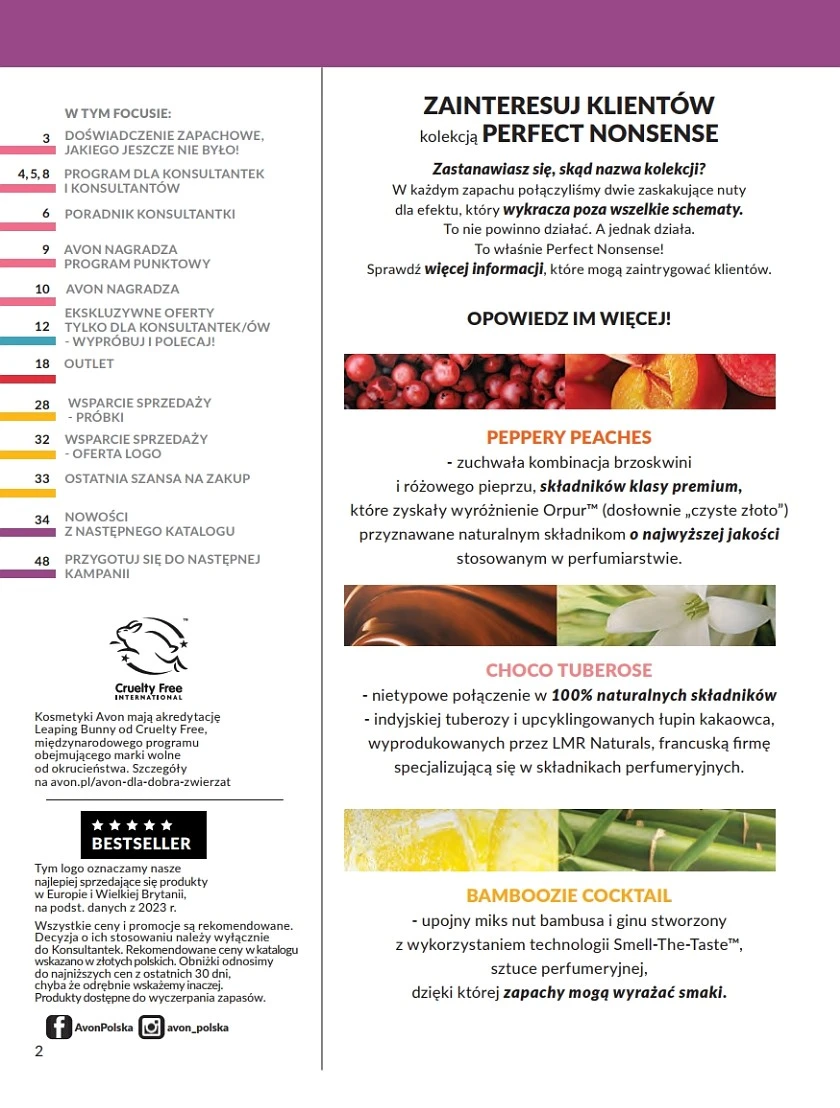 Avon Care Foot Works – Okres obowiązywania tego focusa przypada na czas kiedy robi się coraz cieplej i bardziej odsłaniamy swoje stopy. Dobrze więc wiedzieć, że w ofercie pojawiły się nowe kosmetyki do pielęgnacji stóp Avon Care Foot Works. Wśród nowości znajdziesz m.in.: lawendową, wygładzającą maskę do stóp, lawendową kurację nawilżającą do stóp oraz regenerujący, 3-dniowy krem na popękane pięty. Pełną listę nowych produktów i ich ceny możesz sprawdzić na stronach 38-39.