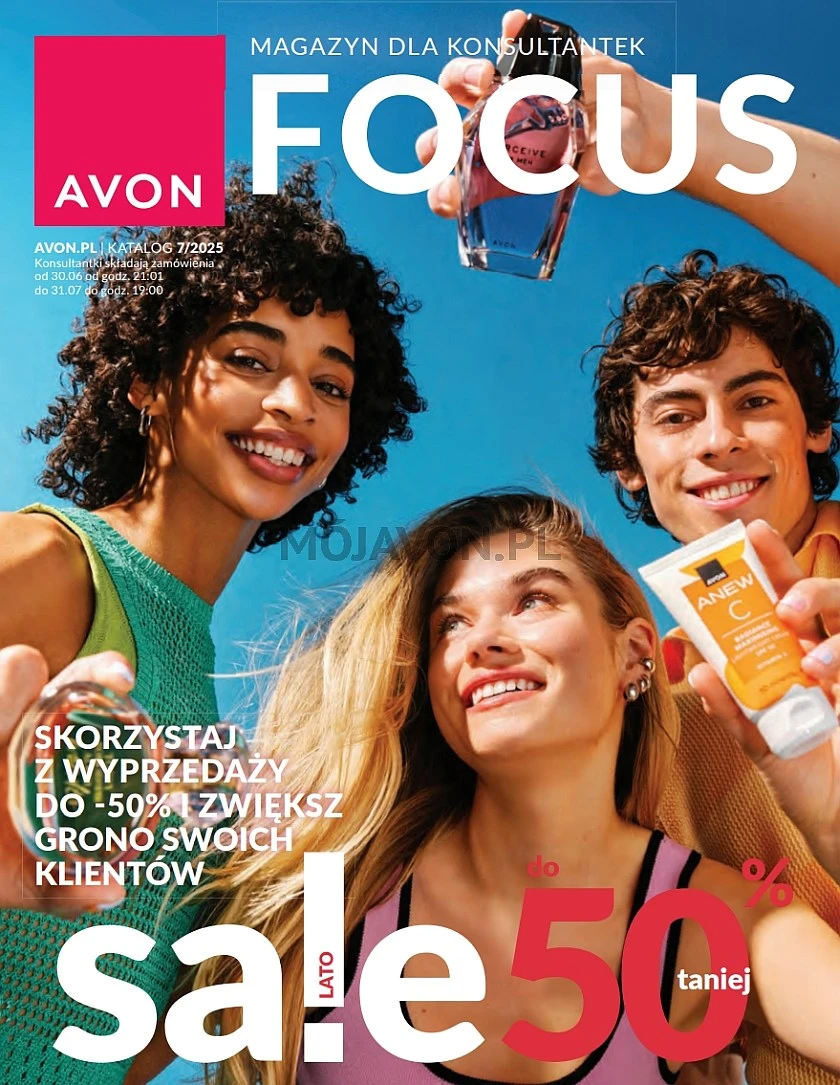 Magazyn Avon Focus 7/2025 obowiązywać będzie przez cały lipiec 2025 roku w trakcie trwania kampanii katalogu 7/2025. Lipcowy focus spodoba się w szczególności miłośniczkom kosmetyków kolorowych. Wśród demo nowości, a więc także nowości z następnego katalogu Avon 7/2025 znajdziesz m.in. kosmetyki kolorowe z serii Power Stay: żelową kredkę do oczu „24 godziny”, cień do powiek w kredce „16 godzin”, matowa szminka w płynie „16 godzin” oraz winylowa szminkę w płynie „16 godzin”.