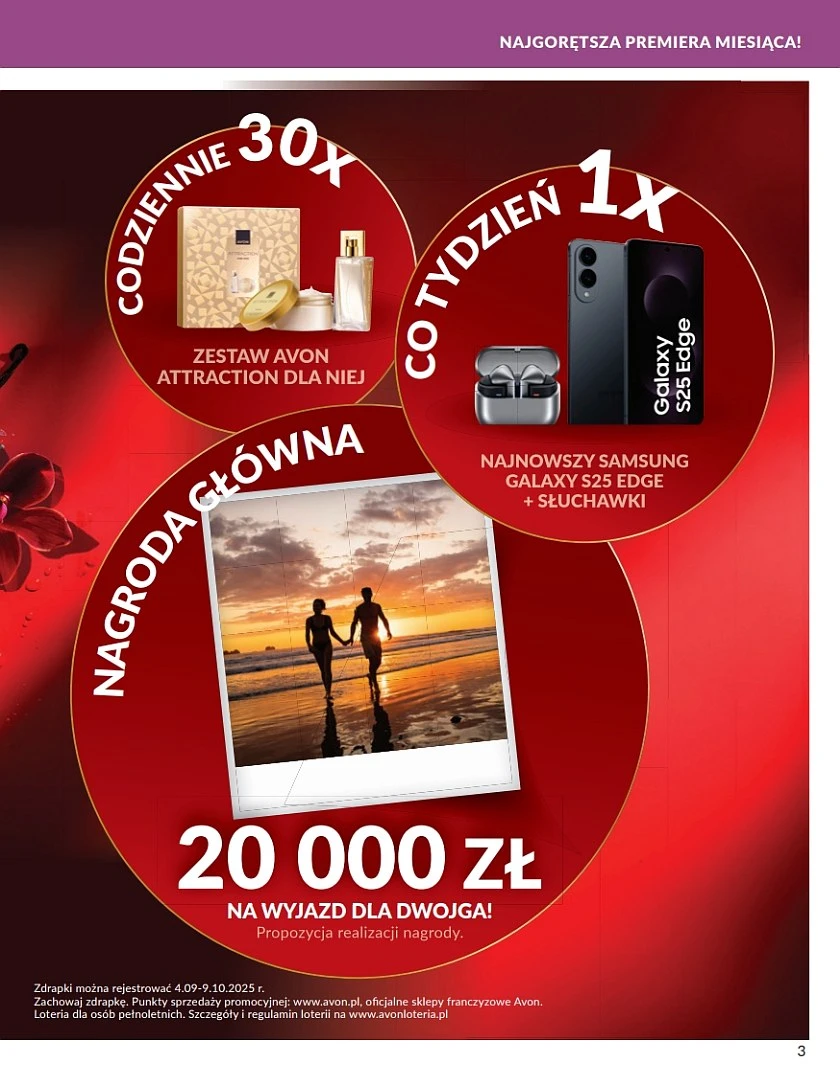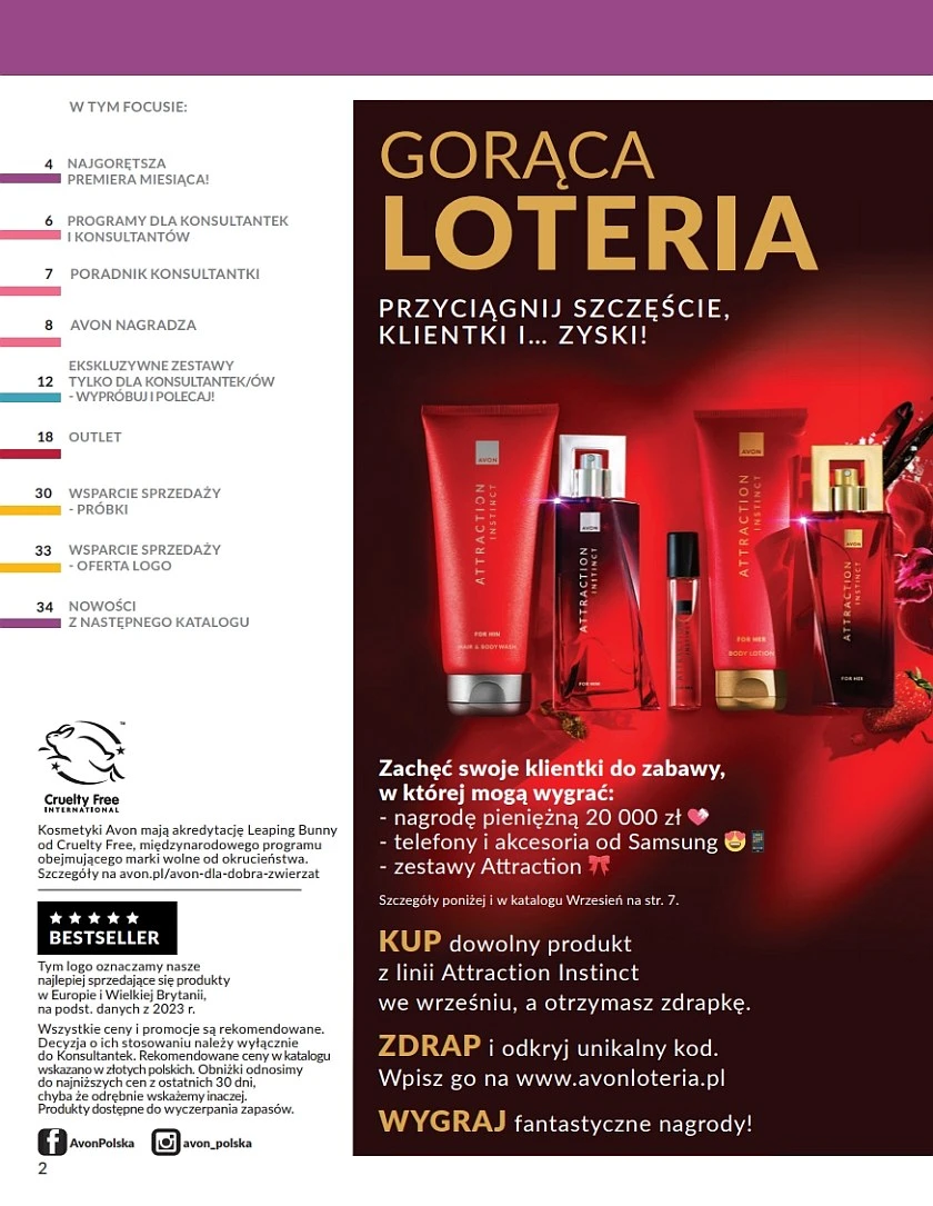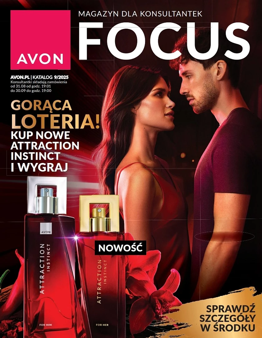 Magazyn Avon Focus 9/2025 obowiązywać będzie przez cały wrzesień 2025 roku w trakcie trwania kampanii katalogu 9/2025. Wrześniowy focus niesie ciekawe zapachowe nowości, o których możesz przeczytać poniżej. Jeśli chodzi o ofertę z outletu, to miłośniczki makijażu mże zainteresować oferta na puder brązujący w kompakcie oraz żelowa kredka do oczy „24 godziny”.