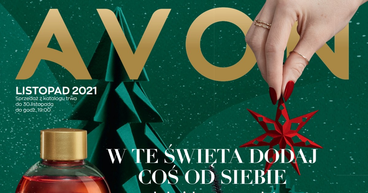 Katalog Avon 11/2021 obowiązywać będzie przez cały listopad 2021 roku. Wśród nowości listopadowego katalogu znajdziesz m.in. zapach dla kobiet Celebre Star, serum do rzęs biotyną z linii LUXE oraz linia kosmetyków Senses Pierniczki o korzennym, rozgrzewającym zapachu. Na szczególną uwagę zasługują wybrane zapachy, których flakony mogą mieć własny grawerunek.