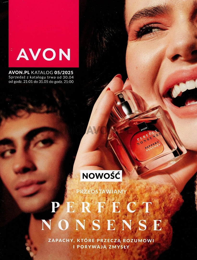 Katalog Avon 5/2025 obowiązywać będzie do 31 maja 2025 roku, do godziny 21:00. Wody perfumowane Perfect Nonsense, to największa nowość tego wydania. W kwietniowym magazynie focus dostępne były również próbki tych zapachów. Aktualnie, linia „Perfect Nonsense” składa się z trzech zapachów. Kolejna nowość, to matujący podkład-serum z SPF30 z linii Anew.