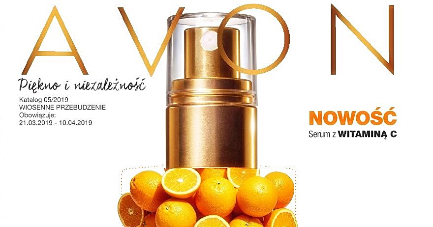 Katalog Avon 5/2019 obowiązywać będzie od 21 marca do 10 kwietnia 2019 roku. Tytuł tego wydania: Wiosenne Przebudzenie. Największą nowością w piątej kampanii jest rozświetlająco-odmładzające serum do twarzy z linii Avon Anew z 10% witaminą C. Serum rozświetla oraz wygładza skórę i sprawia, że skóra wygląda młodziej. Serum, możesz nabyć razem z innymi wybranymi kremami Anew, których cena została obniżona o 65%. Ofertą zostały objęte kremy: Anew Ultimate SPF 25 na dzień, Anew Platinum SPF 25 UVA/UVB na dzień oraz Anew Nutri Advance. Nowe serum Anew, kosztuje 45,99 zł. Jednak możesz je też kupić w zestawie z wybranym kremem z linii Anew. Szczegóły oferty znajdziesz na pierwszych stronach katalogu.
